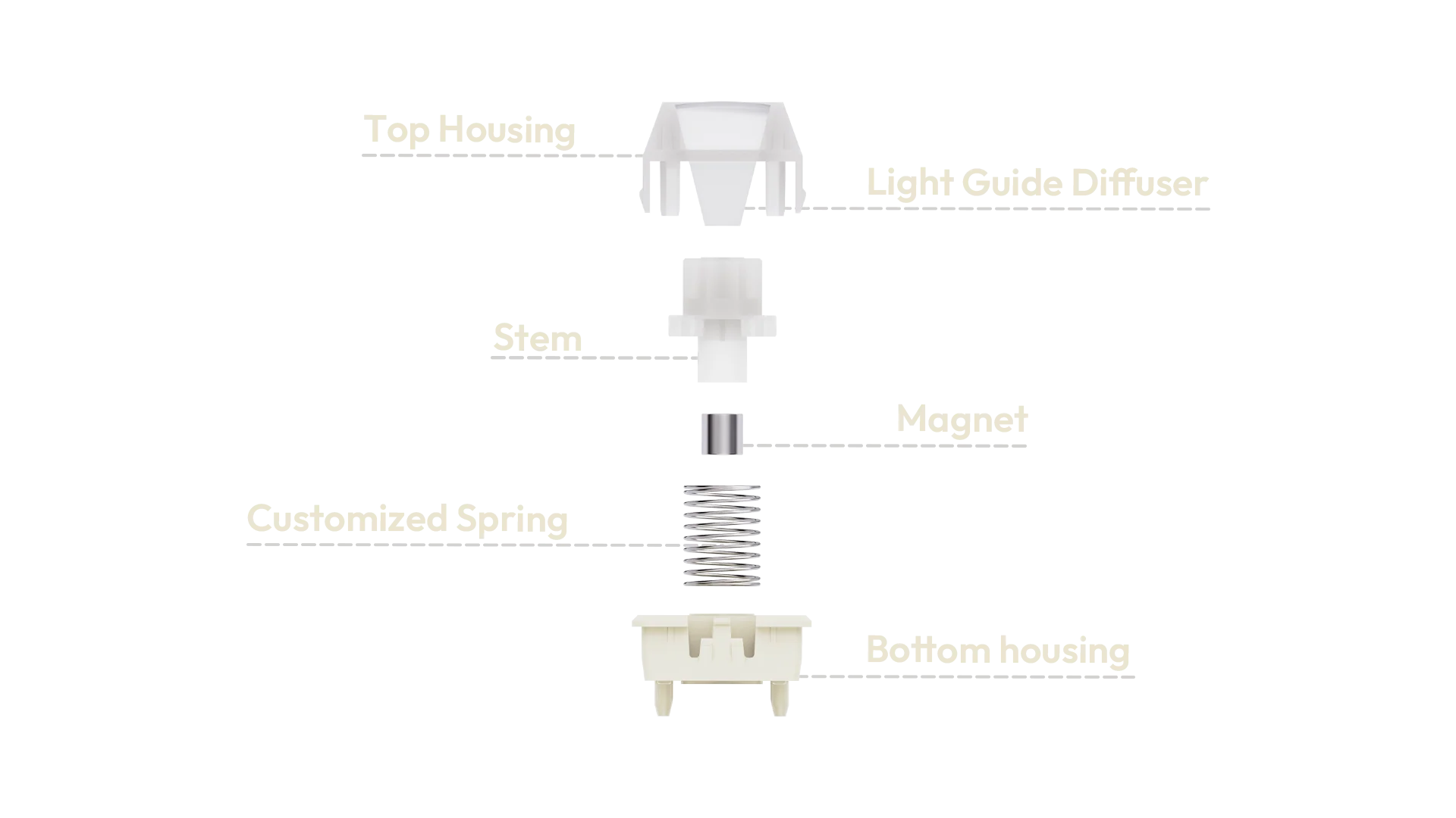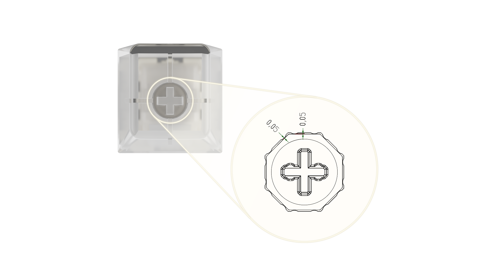 1 - Octagon Stem - Moving away from your typical rectangle design, the Eight-Sided Stem brings the minimum level of tolerance on every touch, from every position. Here, we've been able to create the most stable switch available