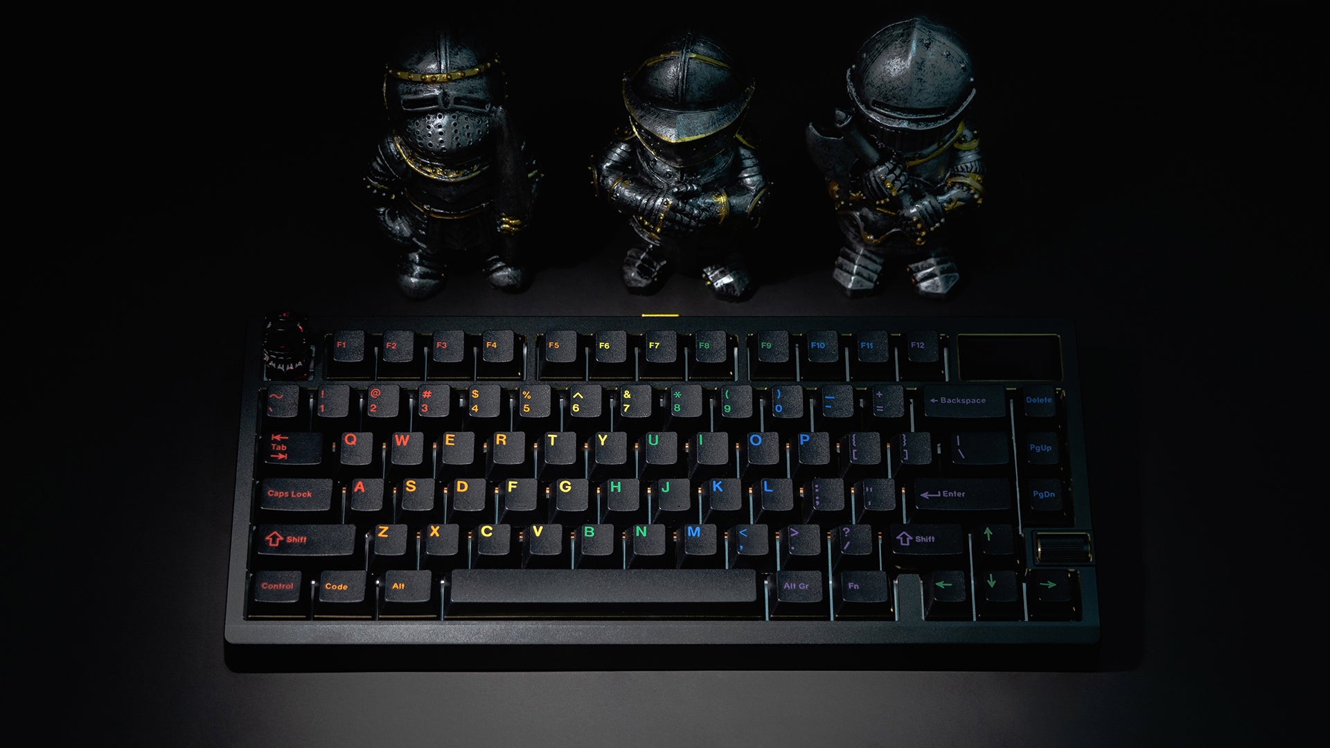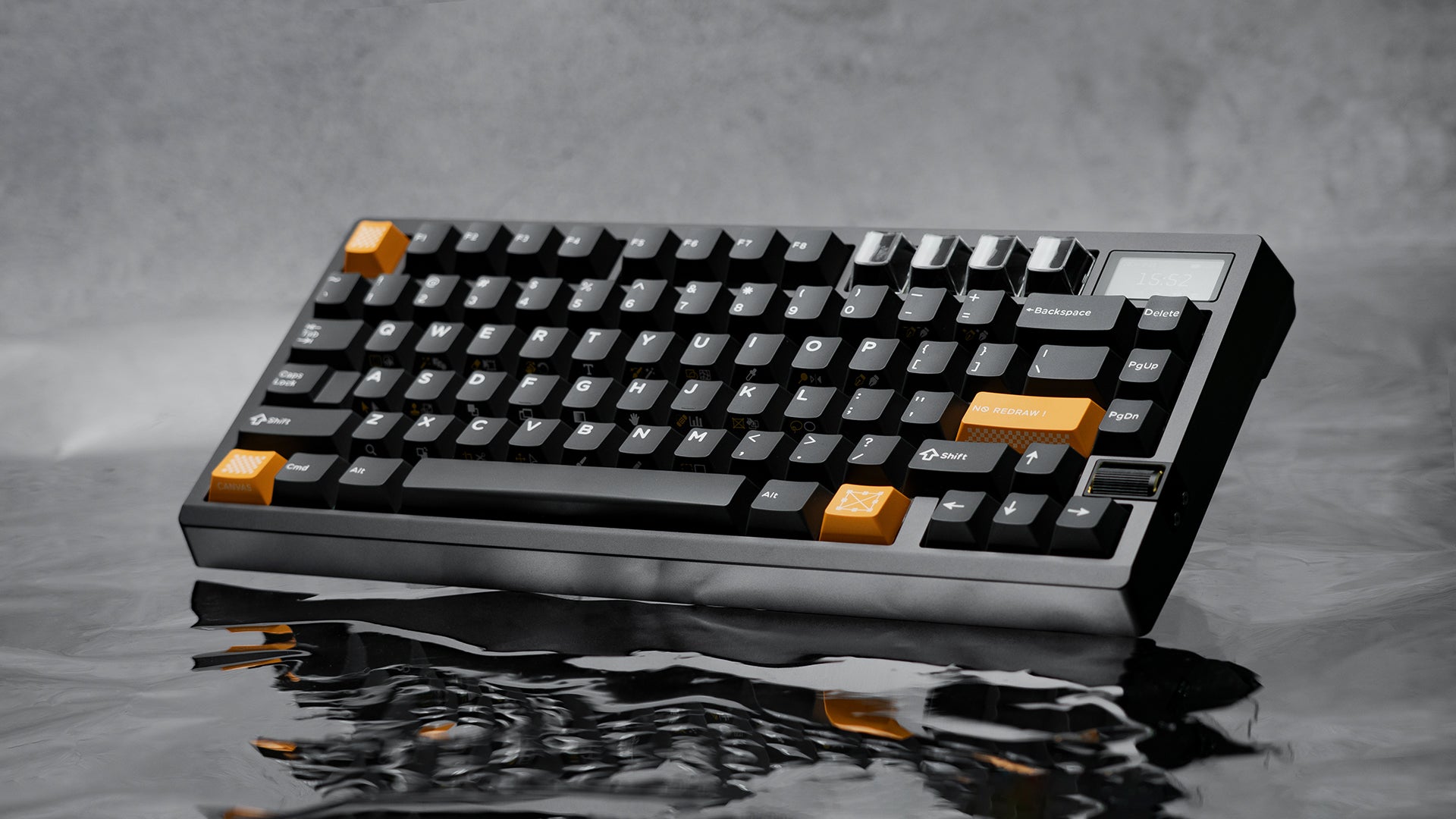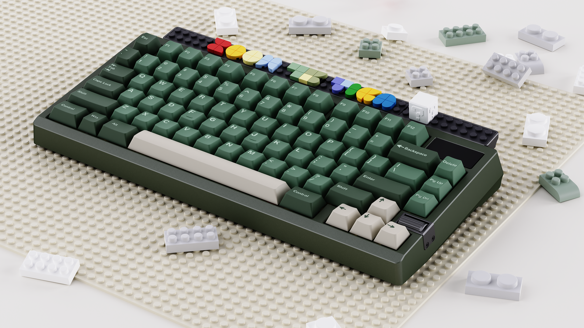 We used a scroll wheel knob to maintain a large screen while providing functionality. The screen can be swapped for badges or keycaps for more customization.