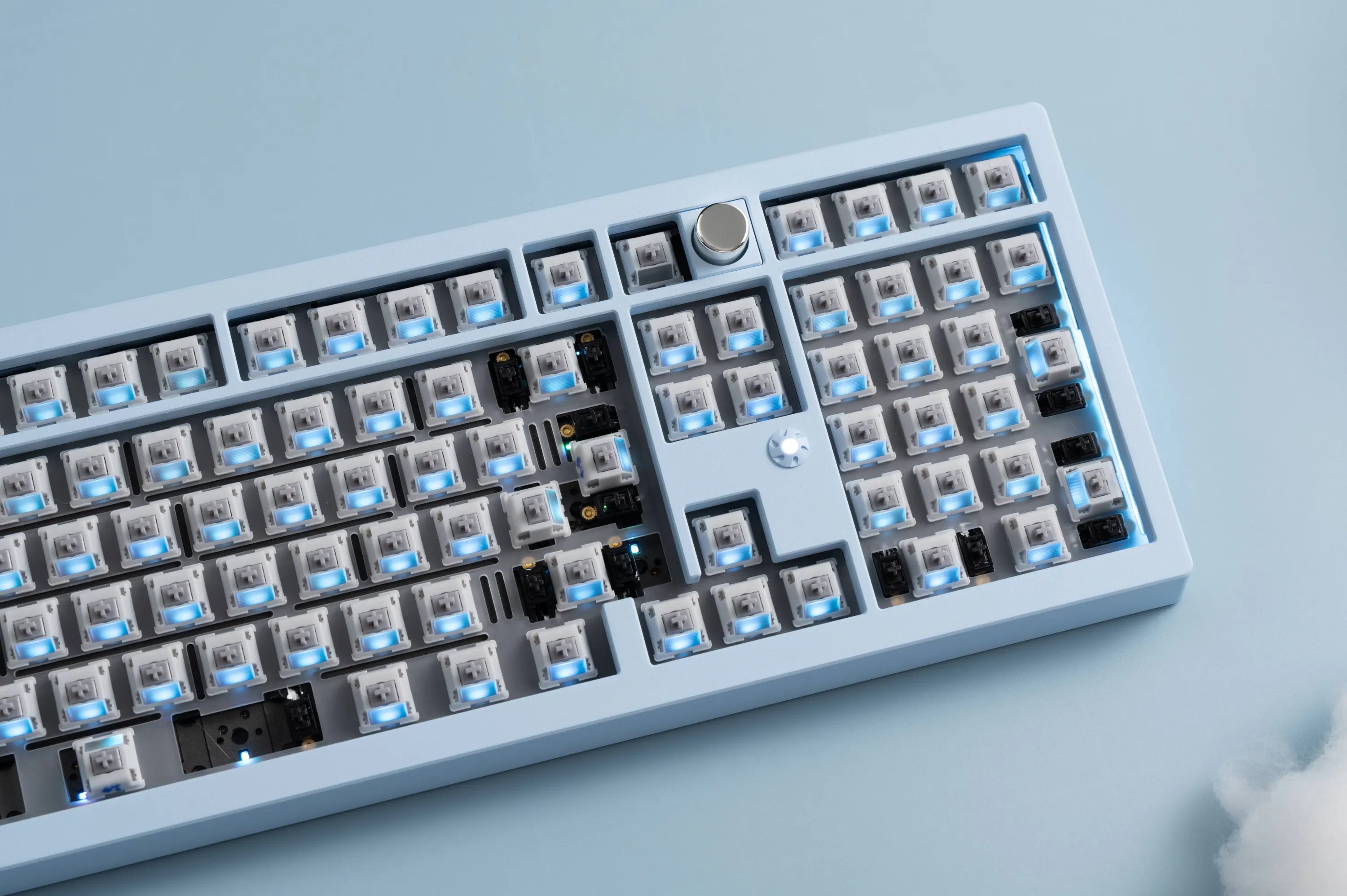 The Tri-Mode PCB enables per-key RGB lighting, offering a diverse selection of colors and effects to enhance your visual experience. It is compatible with wired, wireless, and 2.4GHz modes, except for the wired PCB which lacks this feature.