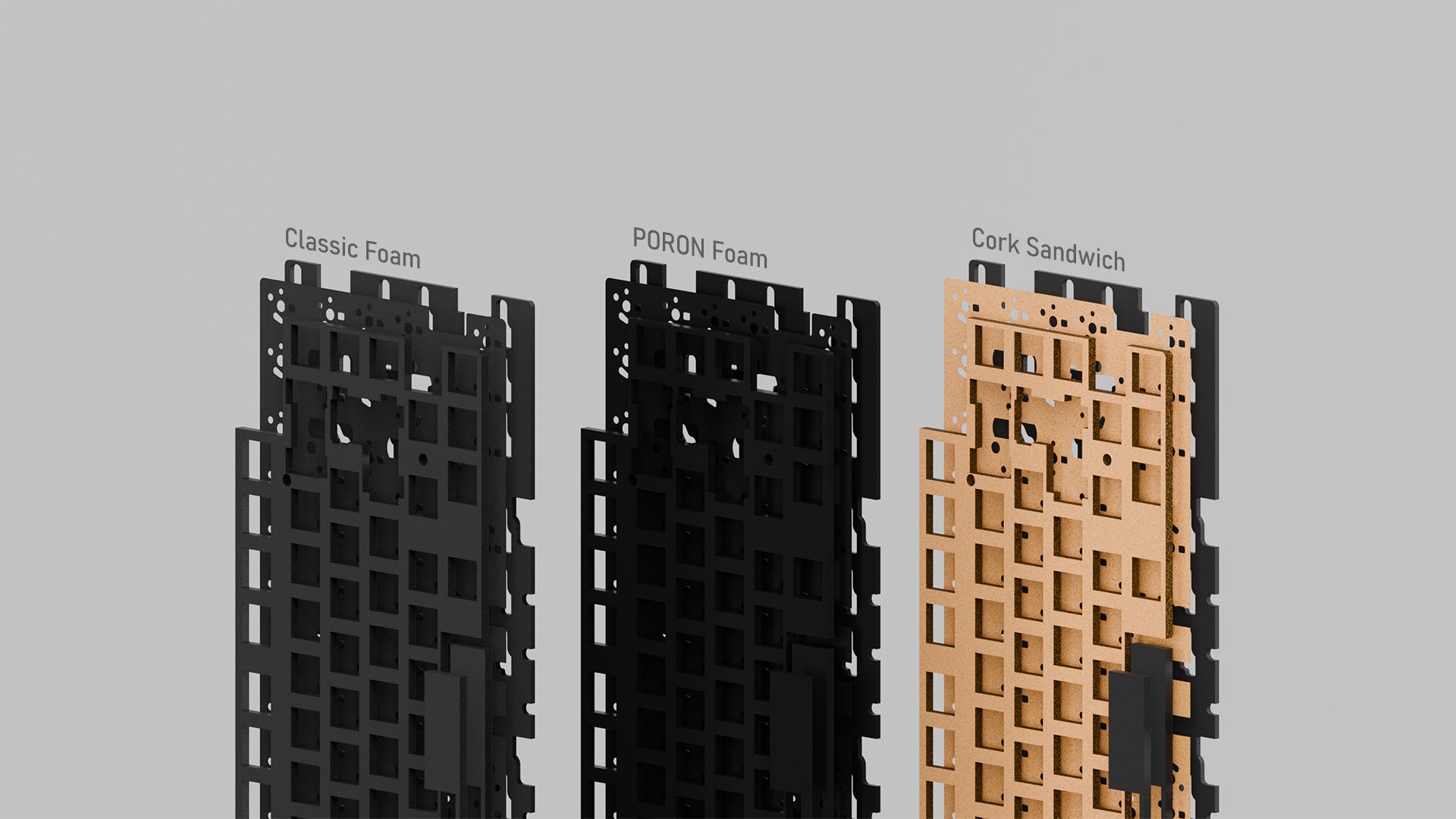 처음으로, 전통적인 폼이 없는 보드를 선호하는 사람들에게 완벽한 "코르크 샌드위치"를 소개합니다. 이 코르크 층은 독특한 타이핑 경험을 위해 더 선명한 소리를 냅니다.